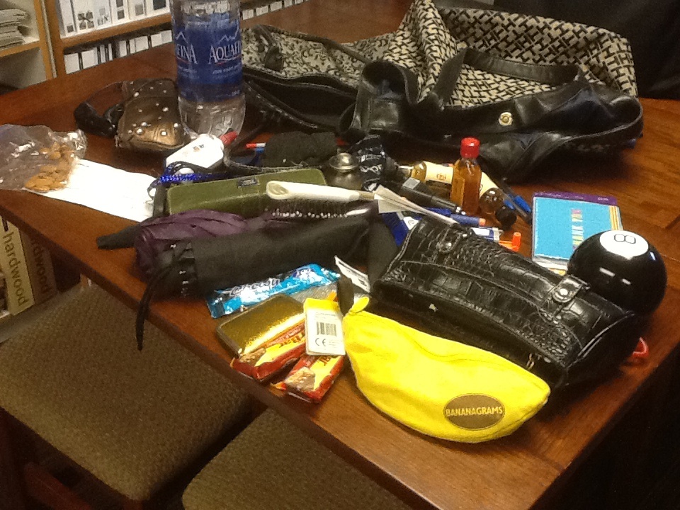 Deciding that a drawer cleanse might be too ambitious for a hoarder such as myself who wasn’t quite ready to get rid of the 50 fake Tinkerbell tattoos (saving for a special occasion) that were under the box of 150 Q-tips and behind the 27 mini bottles of hotel shampoo from the last few months of overnight travel (to name just 227 of the over 1000 items in my top bathroom drawer) I eyeballed my giant purse sitting on the table in my office…